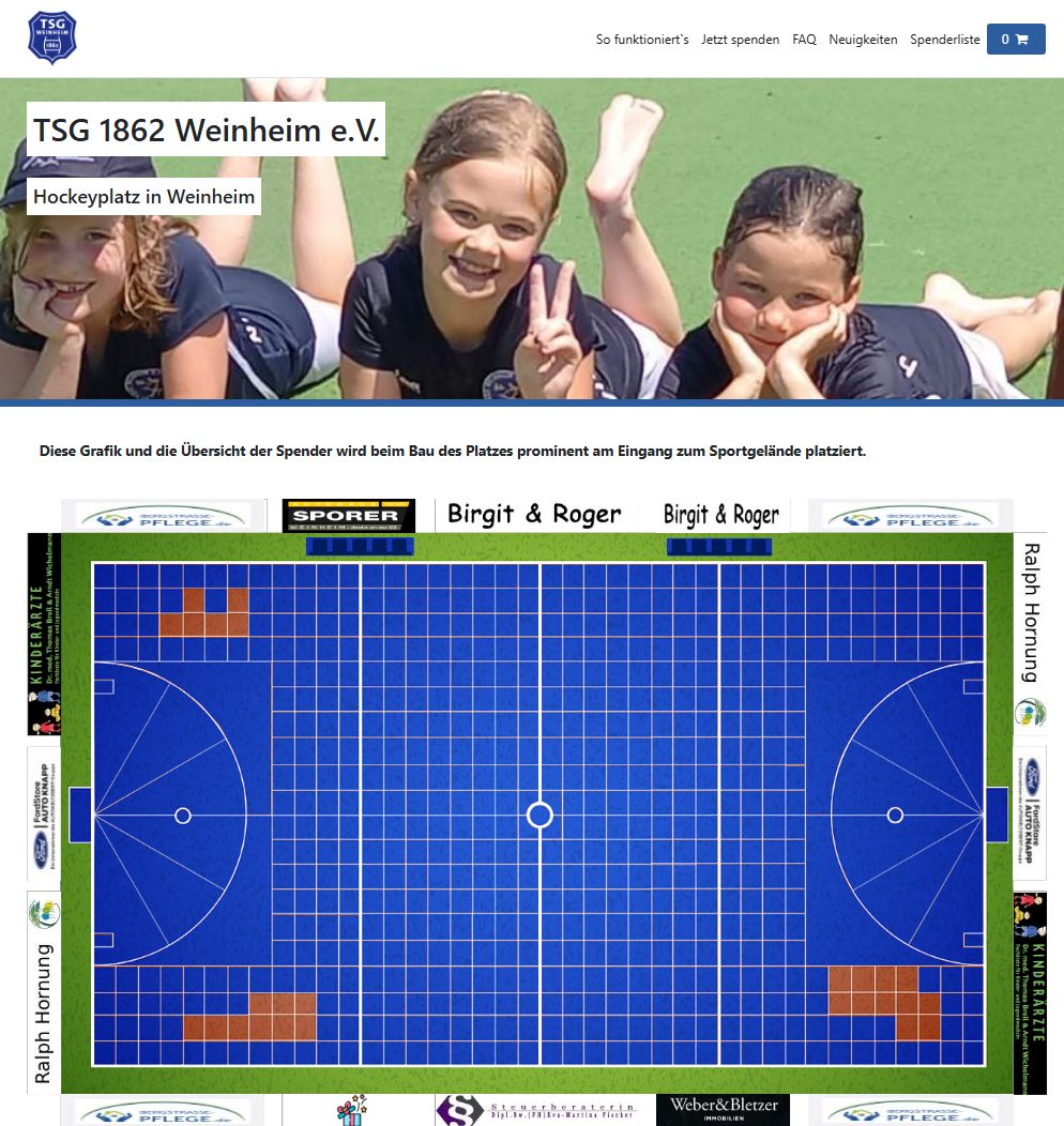 Jetzt live auf der neuen Website hockey-weinheim.platzvermarktung.de können Sie eine Parzelle eines virtuellen Spielfelds auswählen und symbolisch für Spendensummen ab 100 € die Patenschaft übernehmen.